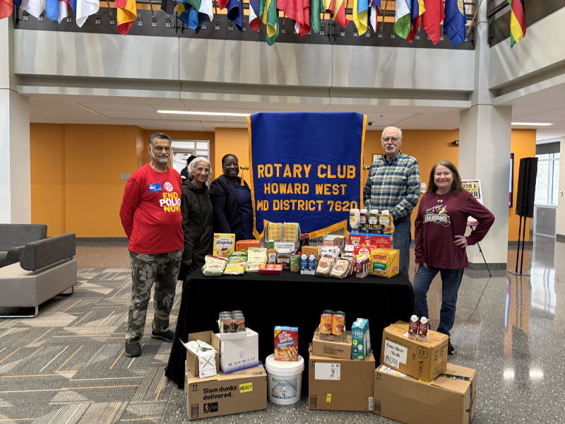 Although Howard Community College (HCC) is located in a high income community, there is a dire need for support of students for rent, food/ daily meals, and aid for tuition. At least 30% of the enrolled student population both undergraduate and graduate, come from low income families. The goal is to help with nutritional needs by purchasing needed items and stocking the HCC Food Pantry ("Fueling Dragons"). Club Rotarians select sources, purchase items, package them, and stock the pantry in person. All club members are involved.